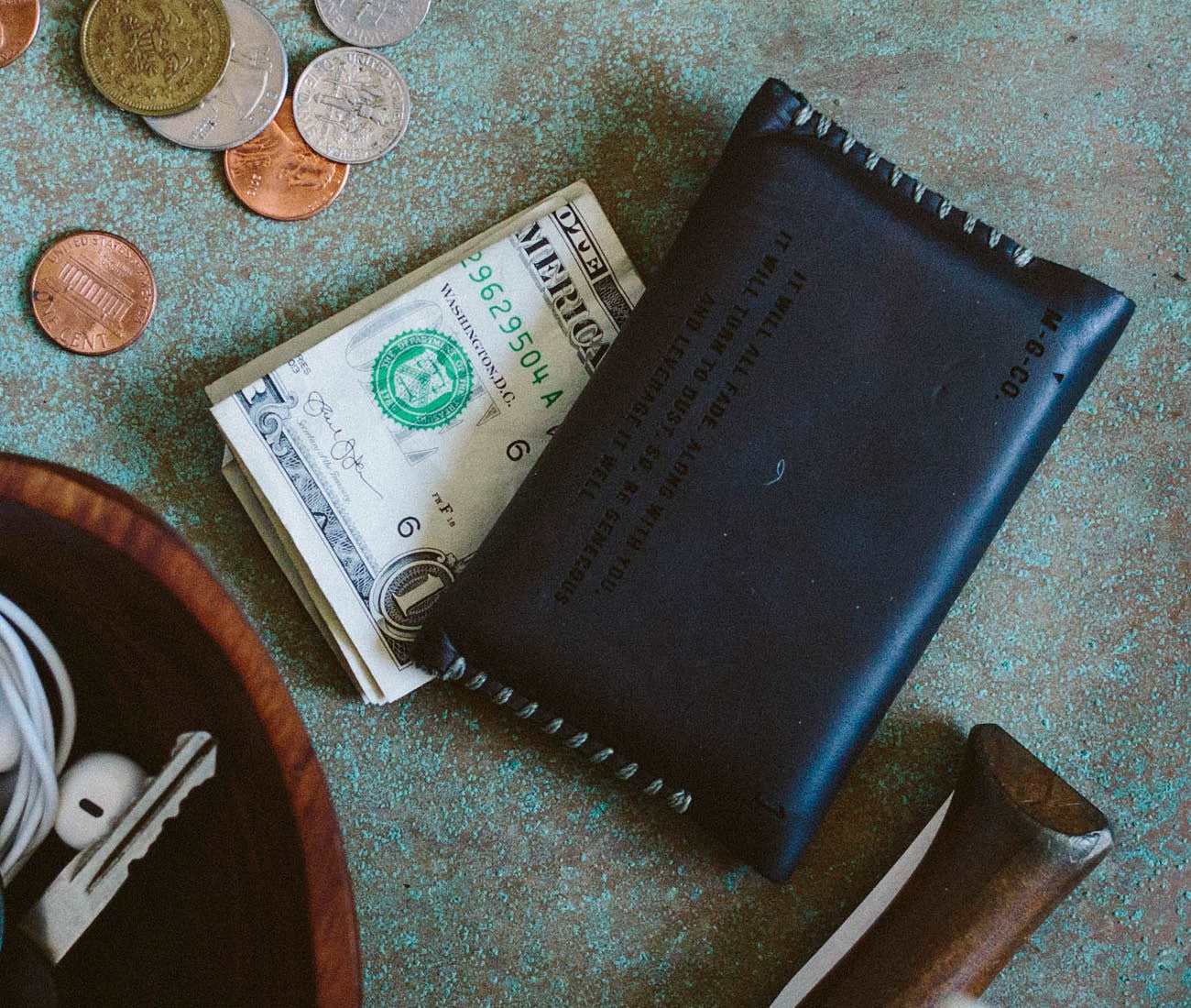 Made for the minimalist carrier, this strong wallet is made with a single pocket and slim flap which comfortably holds 20-ish cards, ID’s and folded cash without adding bulk to your pocket.