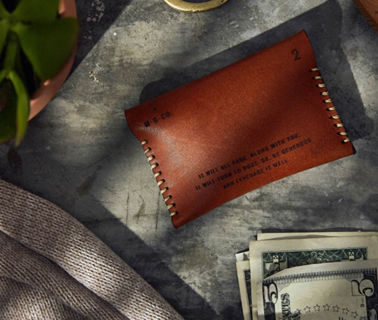 The leather is sourced from the best tanneries in the US. and cut/engraved with attention and care. Afterwards they're hand sewn with waxed cotton thread. The details of this production are seen in subtle ways. As the leather changes and gets better with age, so will your appreciation for this simple, but useful design.