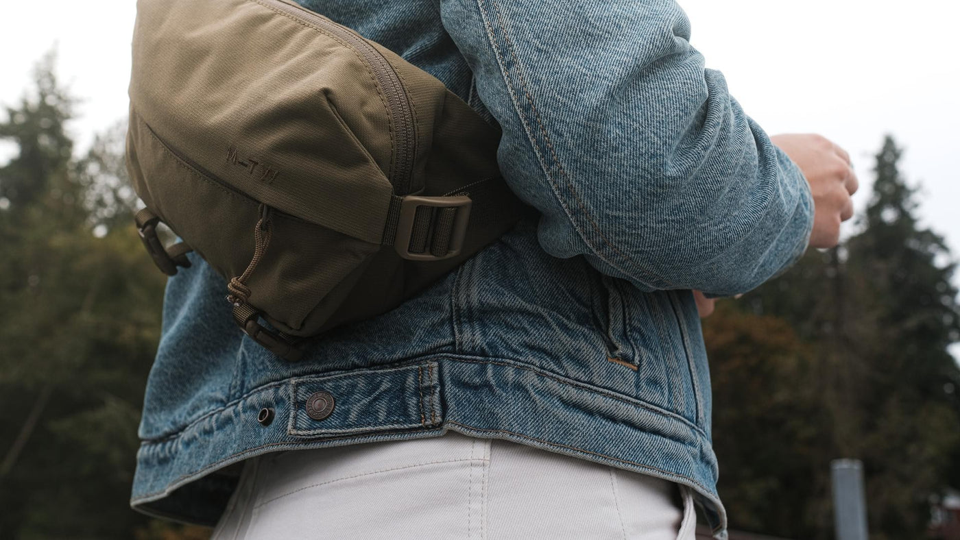 This is the daily, go-to fanny sling. It’s comfortable, adjustable, and fits your daily carry from wallets to keys to phones, and even a 35 mm camera. The seven different adjustment points mean the pack can expand for tall people, shrink for small people, and cinch down for minimal carry.
