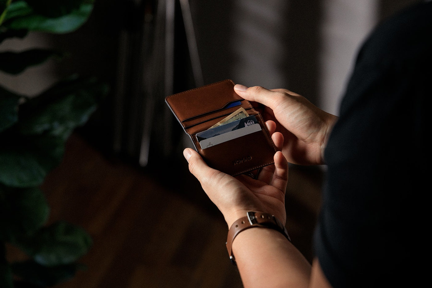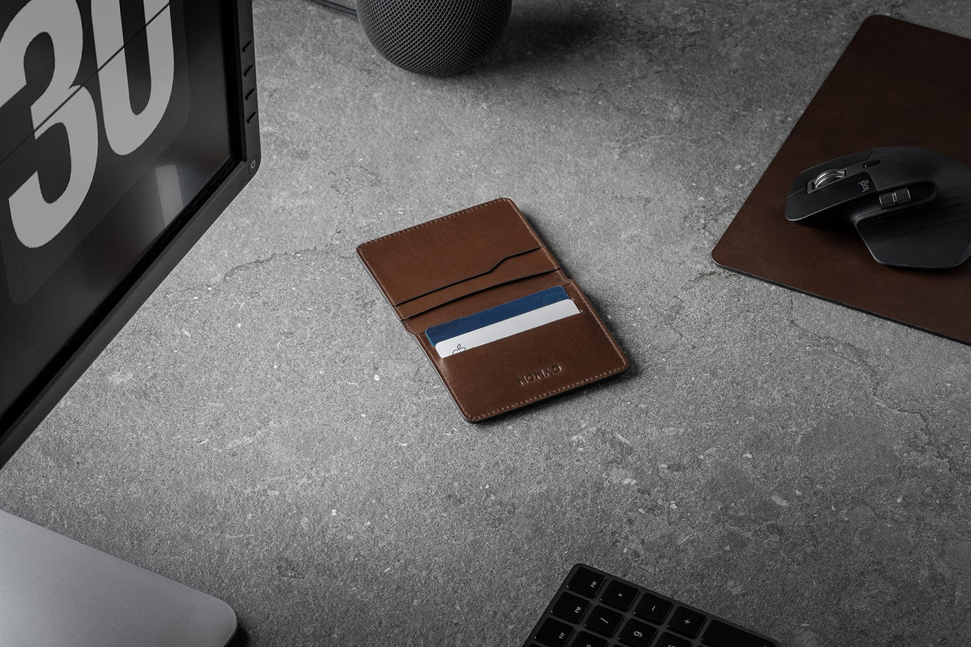 The leather is bonded to a thin layer of reinforcing fabric and then molded into shape using intense heat and pressure. This thermoforming process creates space to store your cards without requiring the leather to stretch out, keeping your cards securely in place and your wallet looking new for longer.