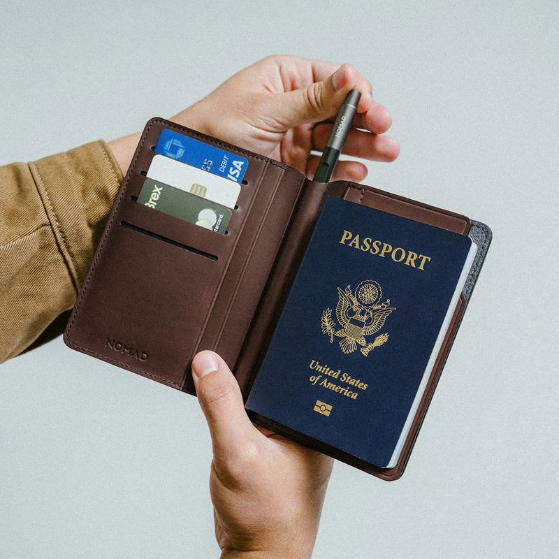 Experience travel like never before with Passport Wallet, thoughtfully designed to make your travel day hassle-free. This sleek leather accessory features 4 card slots and 3 larger compartments including a dedicated slot for your passport and a quick-access flap for your boarding pass. Plus, an integrated magnetic pen slot ensures you're always prepared.