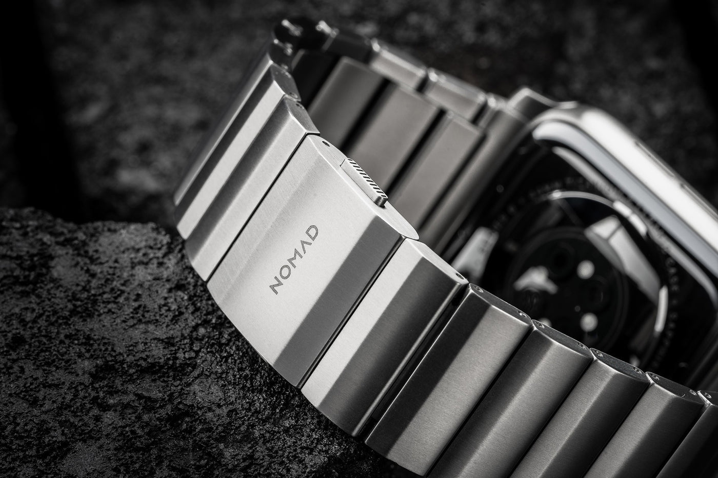 Built from Grade 2 Titanium and an advanced Diamond-Like Carbon coating, the Nomad Titanium Band is engineered to be as light as possible while giving you the elegance and durability of a classic metal link bracelet.