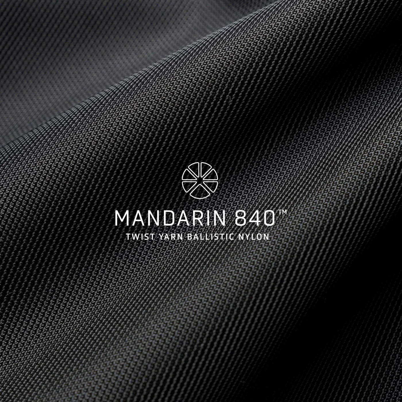 The premium super fabric MANDARIN 840™ is specially woven to endure the longest hauls while maintaining a professional composure for the perfect combination of grit and grace. Woven with twisted yarn ballistic nylon for a denser, stronger weave. Featuring a DWR finish and backed with a waterproof membrane. Exceptional hand-feel and drape with a dull satin finish.