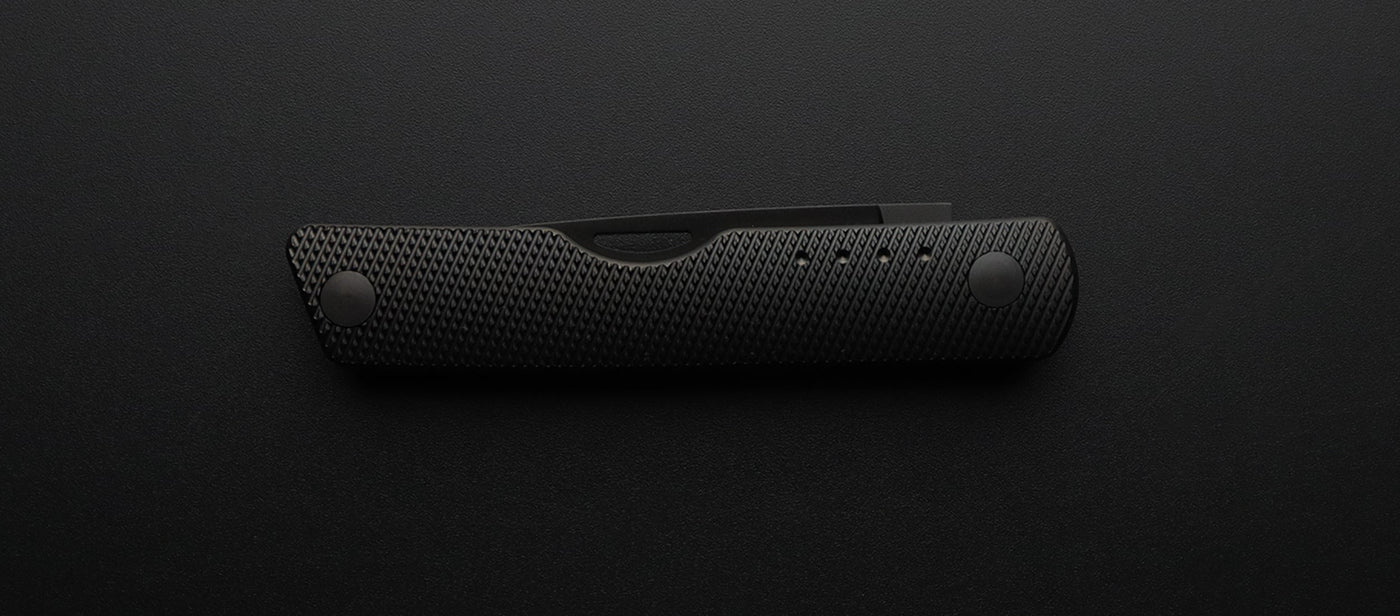 Available in a variety of blade and handle finishes. Black handles and blades are PVD coated. Raw titanium handles are stonewashed.