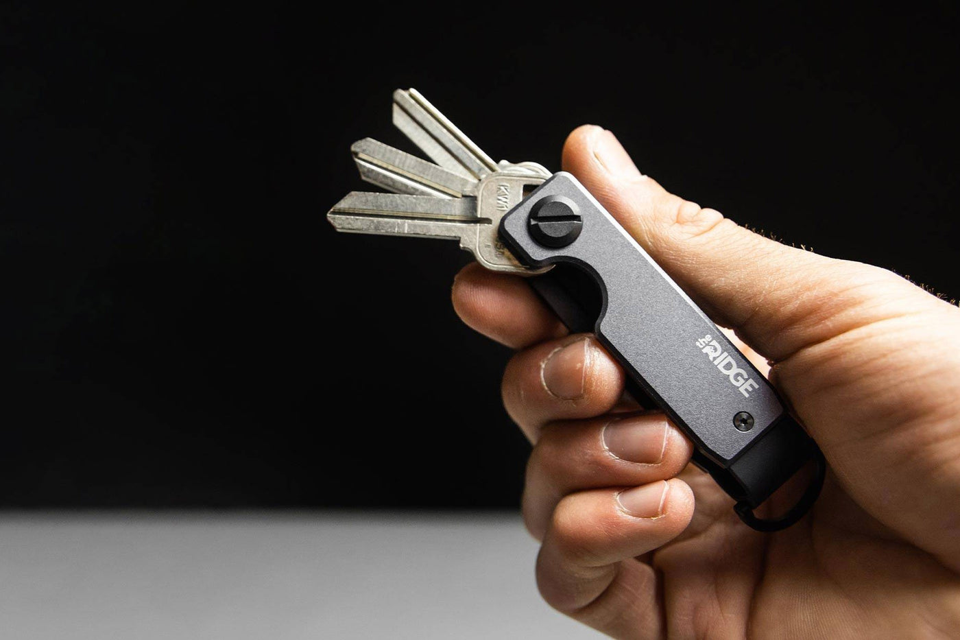 The KeyCase streamlines and organizes your keys in a compact silhouette, securing your belongings with a novel, patent-pending tension panel system. It expands to hold 2-6 keys, and car keys and other bulkier items can be attached to the D-ring.