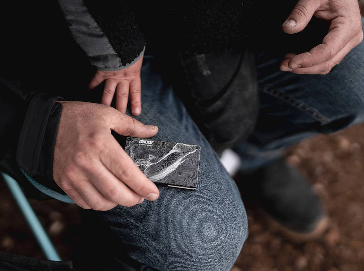 The Ridge är en modern smal plånbok som håller ordning i din byxficka utan att behöva mycket plats. Huvudfacket är expanderbart och ryms 1-12 kort på ett säkert sätt och är dessutom RFID-blockerande. Med sin noggranna konstruktion och robusta material är plånboken utvecklat för att hålla i evighet och den kommer med en livstids garanti. Du kan välja mellan Cash Strap eller Money Clip som möjliggör att ha kontanter, parkeringsbiljetter och scanbara kort (t ex pendlingsbiljetter) på utsidan av plånboken.