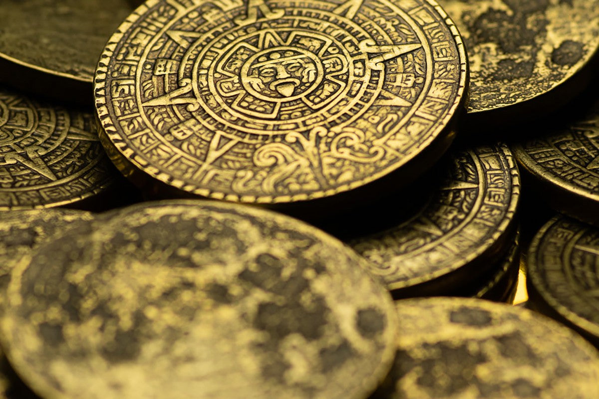 This coin is engraved after the Aztec Sun Stone, a representation of the five eras of the sun from Aztec mythology. After the Spanish conquest, the monolithic sculpture was buried in the Zócalo, the main square of Mexico City. It was rediscovered on 17, December 1790 during repairs on the Mexico City Cathedral.