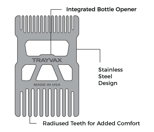 The comb is sourced and made in the USA, backed by the Trayvax 65-year Heirloom Warranty.