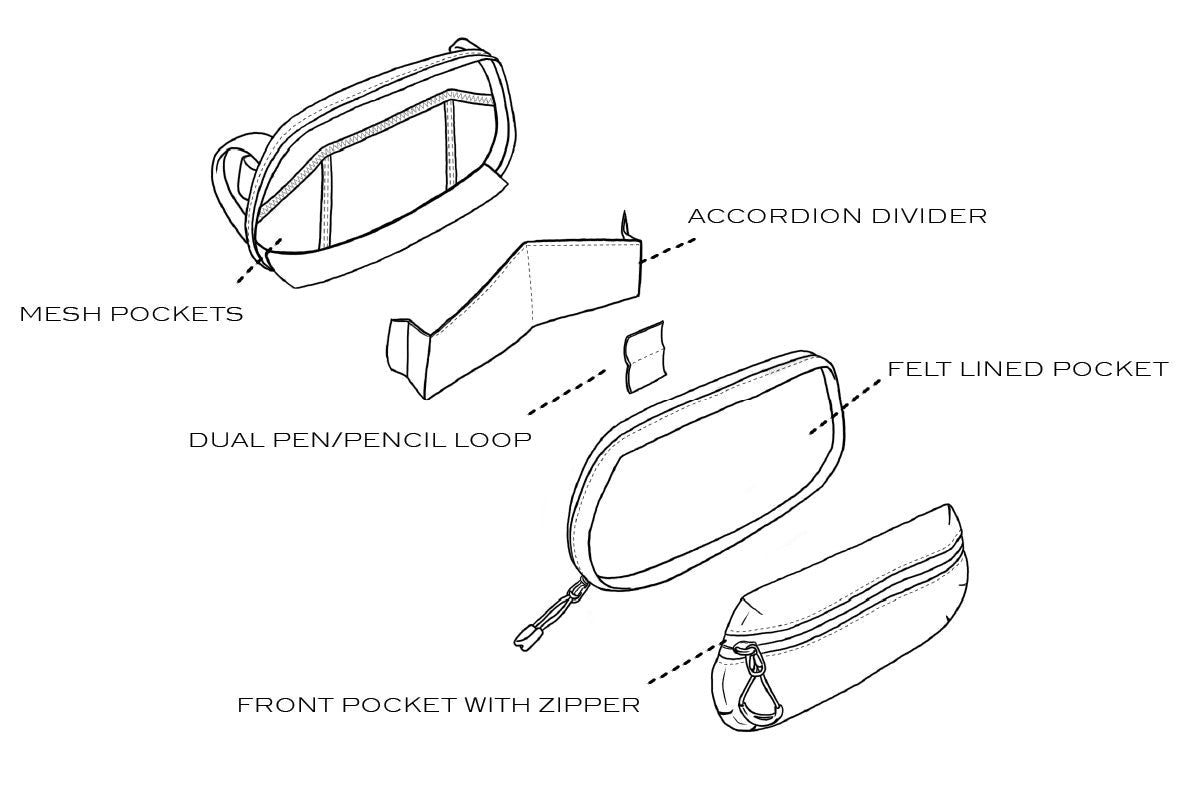 - Internal accordion dividers and three mesh pockets